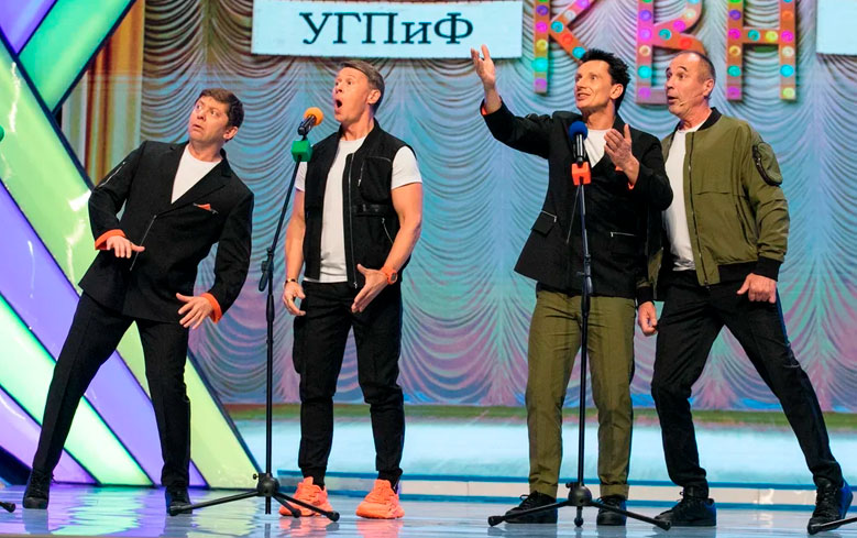 — К КВНу. Мы специально пытались сделать упор на КВН. Я надеюсь, у нас это получилось. Хотя, конечно, нет-нет, да шоу выглядывает из-под КВНа. Как рубашка из-под пиджачка. Да, Димка?