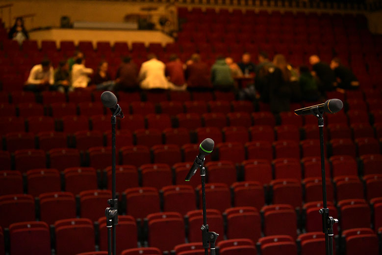 То ли Марк так хорошо продавливает текст, то ли текст такой дурной (в хорошем смысле слова), то ли в зале сидят белорусы, но что-то очень уж люди смеются.