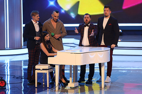 А дальше песня под "Богемскую рапсодию" про то, что КВН стал для команды семьей. Гусман — дедушка, Пельш — бабушка, Муругов — отчим. Хрусталёв — кот. АВМ — мама, а папа — зритель.... Очень "читерский" конкурс, но залу нравится.