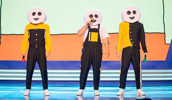 Сначала на сцене появляется очень меланхоличный парень. Потом выходит команда. Диалоги-диалоги: