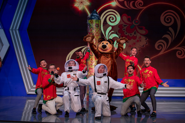 Глава Роскосмоса предложил раскрашивать ракеты под хохлому и гжель. И вот таким теперь видит запуск ракеты команда ЧГУ. Тут большой музыкальный номер. Чуть больше даже, чем у "Наполеонов" в Светлогорске. Неплохой номер. И шутки тут, и танцы, и "Золотое кольцо"!
