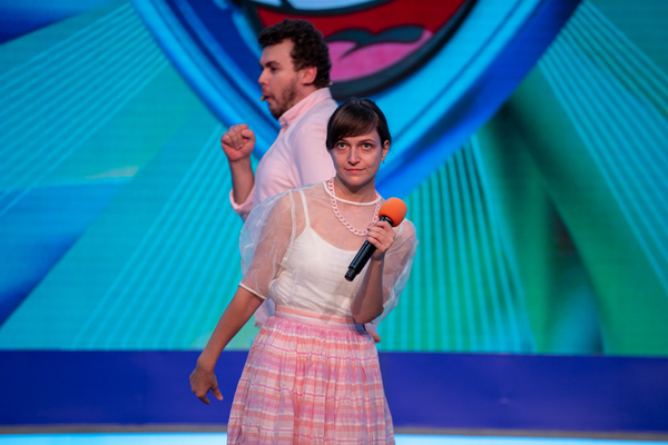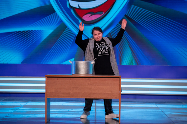 Команда успела раскусить фишку: как попасть в финал. Смотрим на экран - там нарезка обращений к Пелагее. И даже игра Алима на трубе для Пелагеи Сергеевны. Жаль только, в жюри ни Пелагеи, ни в принципе девушки. Парень берёт букет и идёт в зал. Пытался подарить самому дорогому человеку в жюри. В итоге не нашёл такого, вернулся на сцену. Сан Санычу тоже не досталось: