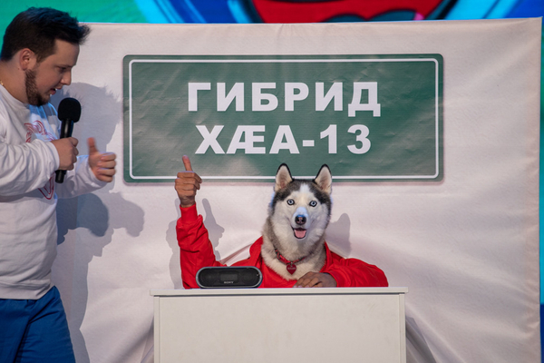 А вот ещё одно изобретение бакалавров. Гибрид. И он, между прочим, лучше любой собаки ищет наркотики. Собакен берёт телефон и начинает кому-то звонить (истерика в зале).