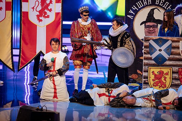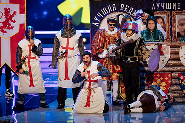 Тут, естественно, на каждом крестоносце была хорошая фраза от известного КВН-щика. Ну и реакция зала - тёплая!