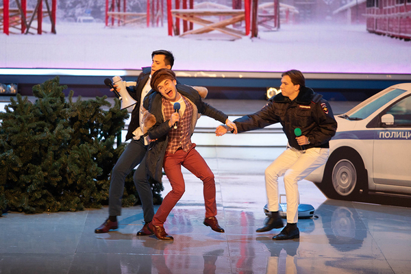 Сейчас на сцене воссоздаётся сцена "Иронии судьбы". Альмир зовёт на сцену Нагиева: