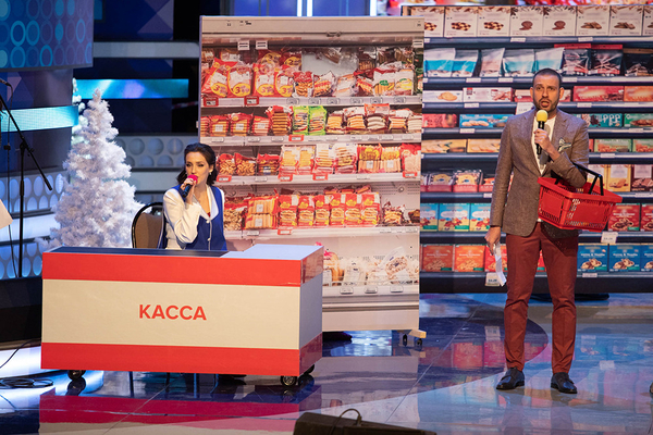 Лига Чемпионов. Ну в том плане, что на экране соответствующий баннер, гимн. А певец Вова музыкально объявляет всех: Ирина, буряты, Венцеслав из "Дом-2" и так далее...
