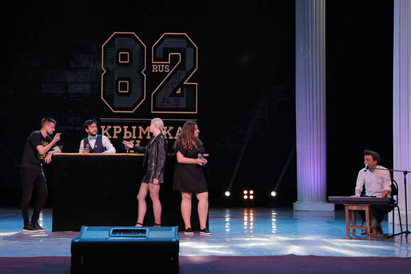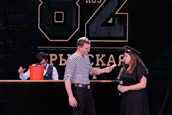 - На сцене команда из Севастополя. Поэтому сейчас в каком-то крымскотатарском кафе нет повара (намёк на Энчика), на пришвартованном корабле не помыта палуба (намёк на Сергеича), а в севастопольском спортзале (намёк на Иру)... Ну там в принципе ничего не изменилось!
