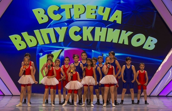 И всё это под аплодисменты нескончаемые. Поют про свой путь в кавээне — с фото на экране
