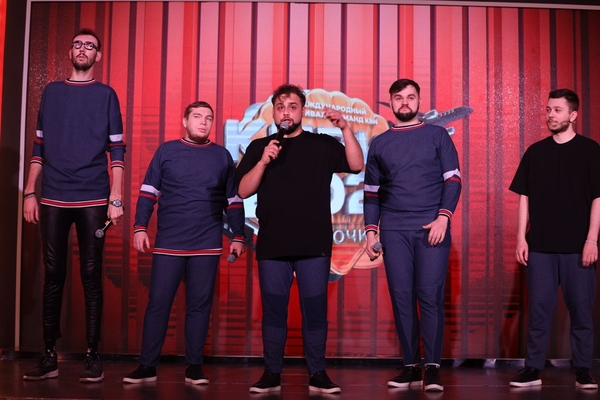 На сцене: отец, дочь и кум. Да, вот такой странный семейный состав. Сейчас ещё и мать с младшими детьми вышла. Отец (фронтмен) лет 20 играет в КВН, поэтому на эту поездку в Сочи собирал деньги со всех.