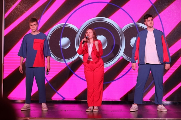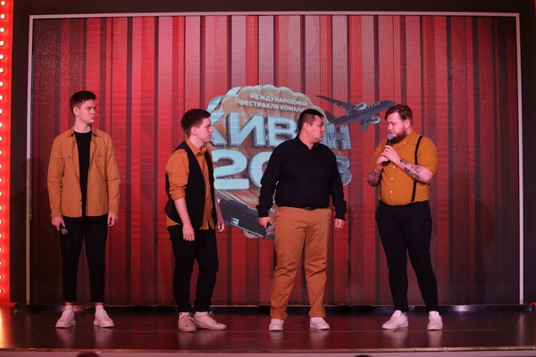 На сцене странные и нестандартные ребята, с первых шуток нравятся залу.