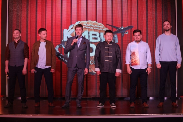 А вот сейчас, например, пародируют команду "+7", и уже от их имени подают всяческие приколы и шалости. Прикол про Сангаджи Тарбаева буквально убил зал.