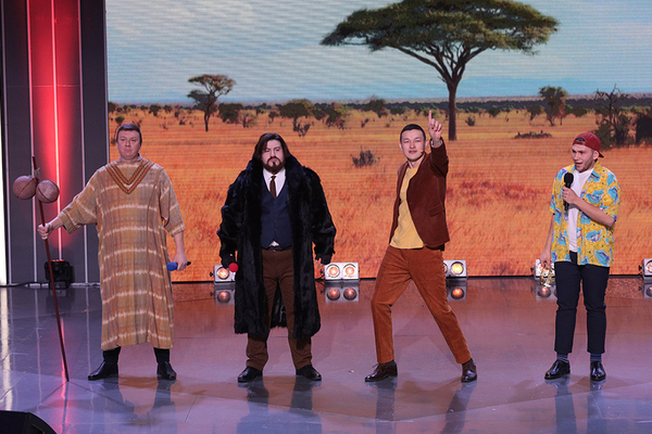 Рома выходит и ему, конечно же, все не нравится. Поэтому нужно показать что-то другое. Например, что-то из номеров других команд. Происходит смешное перемывание костей всем командам. И как итог - Рэпидемия в Простоквашино по мотивам Короля Льва в стихах. Ну и Тетрис