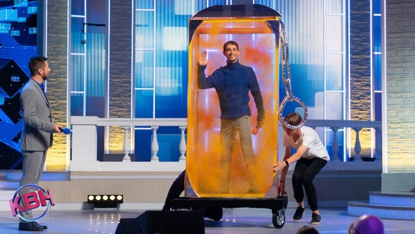 Команда под разными предлогами уходит по сцены и на ней только аттракцион и ведущий.