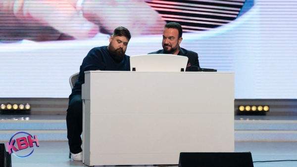 Жилин выходит на сцену и опять номер из разряда «надо смотреть» - присутствует игра на пианино в три руки.