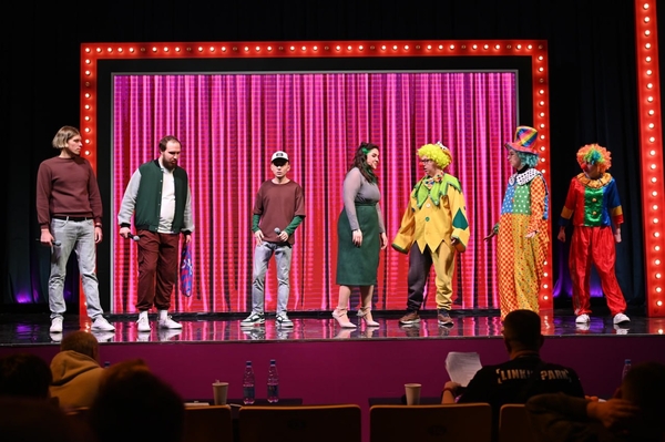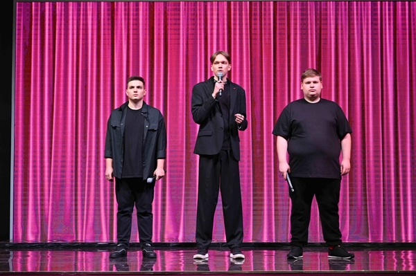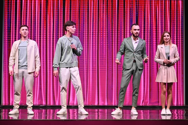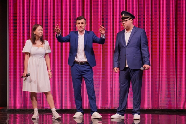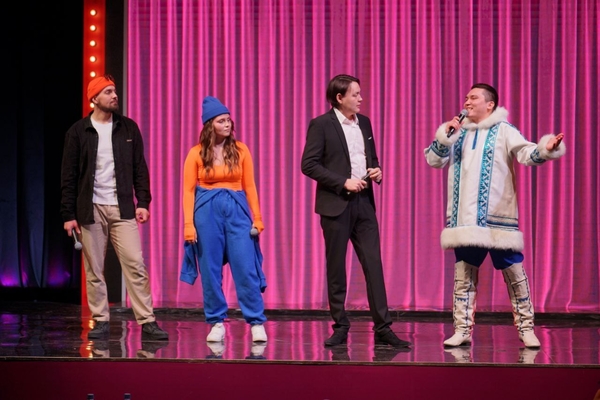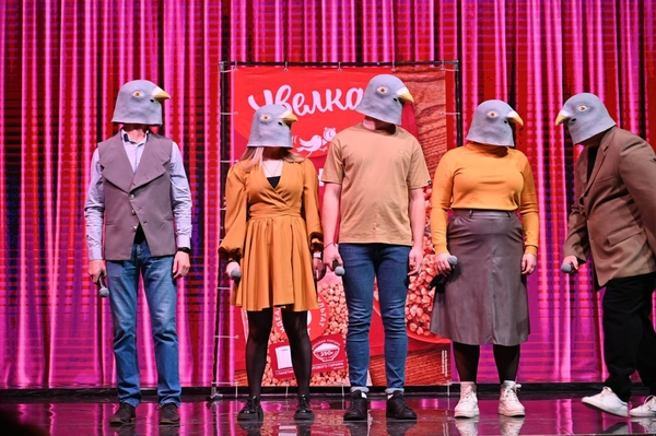 Зал встречает команду как родных. Начинают с шутки про всем известную журналистку и переходят к миниатюрам.