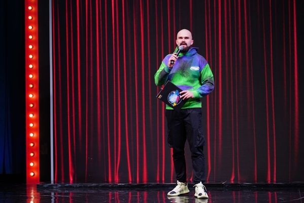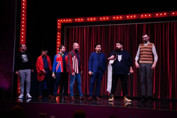 А вот и усиление стариной! Алексей Бектасов на сцене! И сразу же пошли пародии на другие команды от Лёши. А в этом он очень хорош!