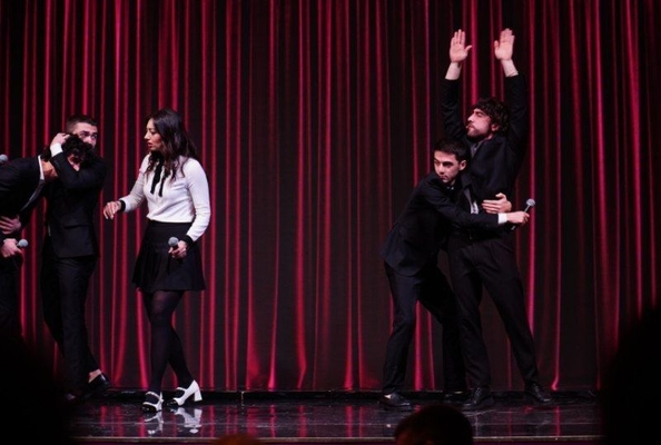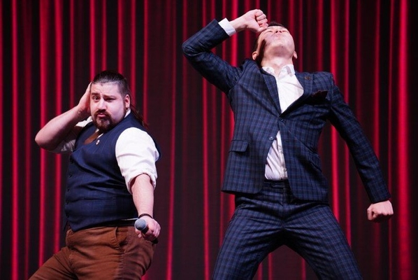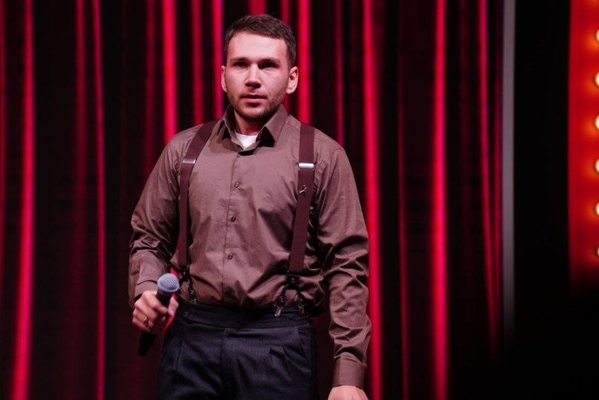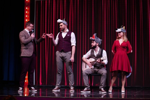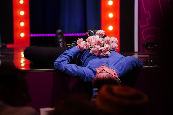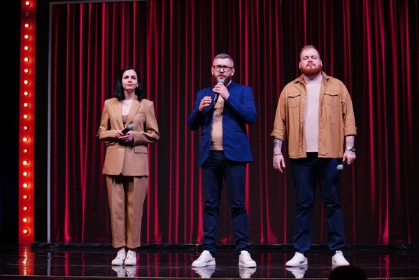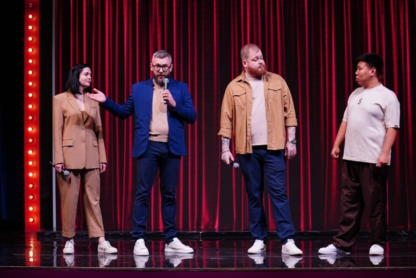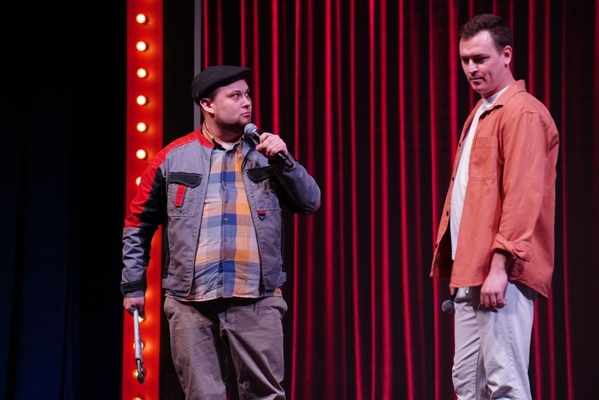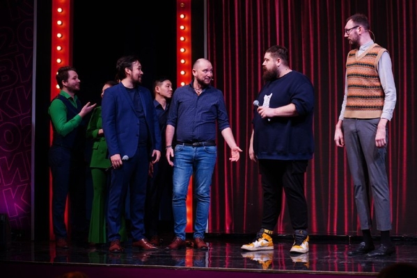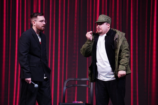 Текст хороший, плотны, зал слушает. Выход Лены - хорошо, а Артема Сизова в роли человека из департамента культуры - еще лучше. Артем отлично отыгрывает в номере и отлично принимается залом: