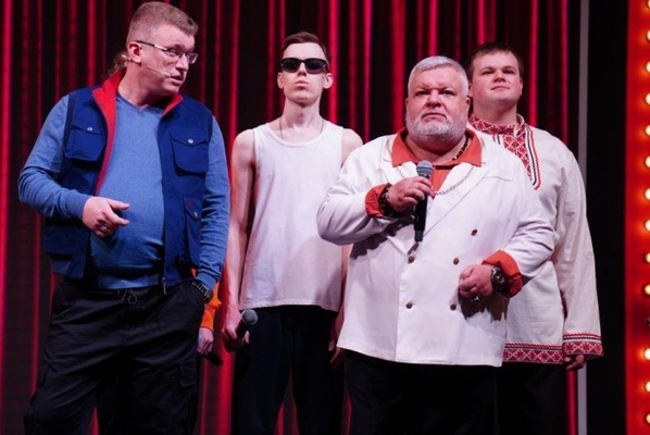 К Саше с балалайкой выходит "ведущий передачи "Играй, гармонь" - на первом канале может быть только один народный инструмент. Поэтому баттл, переходящий в хоровод.