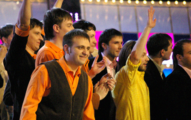 И вот звучат фанфары на начало, Александр Васильевич ведет генералку, изредка делая какие-то правки в сценарии, Светлана Анатольевна из зала очень внимательно следит за процессом съемки передачи, а команды, вышедшие на сцену, словно школьники выстраиваются по меткам на сцене, как по линейке в физкультурном зале.