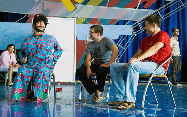 Сразу после сбора программы удалось пообщаться и с третьей командой кубка - хозяевами Сочи, командой КВН «Утомлённые солнцем». В непринуждённой беседе Александр Ревва, Елена Рыбалко, Михаил Галустян и Сергей Лунин ответили не несколько вопросов.