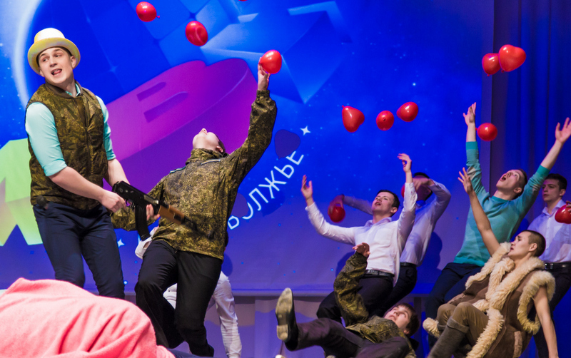 Карапули заходят хорошо. Теперь к миниатюрам. «Парень учился целоваться не на помидорах, а на яблоках – визуалочка. «Дурак купил себе новый айфон», потом ее рефренят – улыбнуло. «Чем занимаються гардеробщицы во время спектакля» – визуалка. В конце шутят про покраску Староволжского моста (актуалочка на местность).
