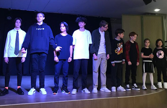 Первый семестр ребята, как обычно, закончили выступлением перед родными и близкими, а уже в конце апреля на сцене ММЦ «Планета КВН» состоялось их выпускное выступление в рамках 1/8 финала лиги КВН «Молодёжь Москвы». Ребята показали свои таланты и навыки, приобретенные в процессе обучения, а зрители оценили это бурными аплодисментами.