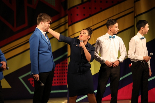 Команда КВН «КаФе» (Костанай) начинают с зажигательной песни.