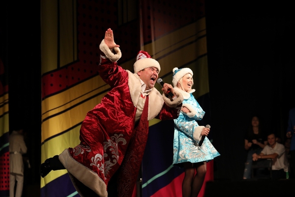 Новогодняя миниатюра – «За новогодним детским столом», появляется Дед Мороз, дети рассказывают стишки – в разрыв. Делают селфи с залом, подводят итоги сезона песней.