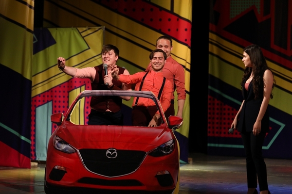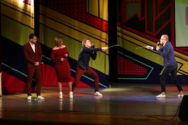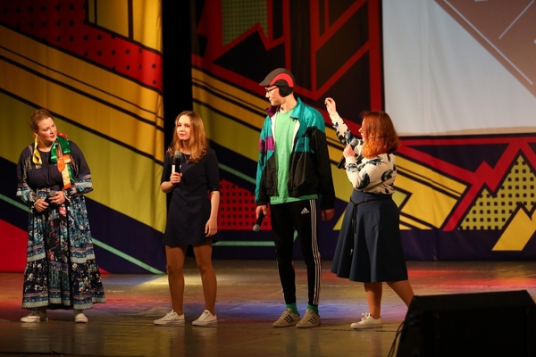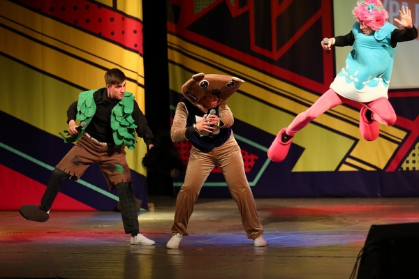Начинают с задорной песенки. На сцене три Насти: главная, деревенская и ботаничка с претензией на сексуальность. Зал оживился, ребята яркие. Выходит гопник Вася, парень главной. Следом за ним ещё Аня, его бро, дальше, конечно, девчачий конфликт – хорошо пока. Разборки, наконец, закончились, можно и номера посмотреть. Шутка про храм в ЕКБ второй день залу заходит на ура, секси-ботан Настя рвёт зал, подача огненная! Снова разборки из-за Васи. Заканчиваем.