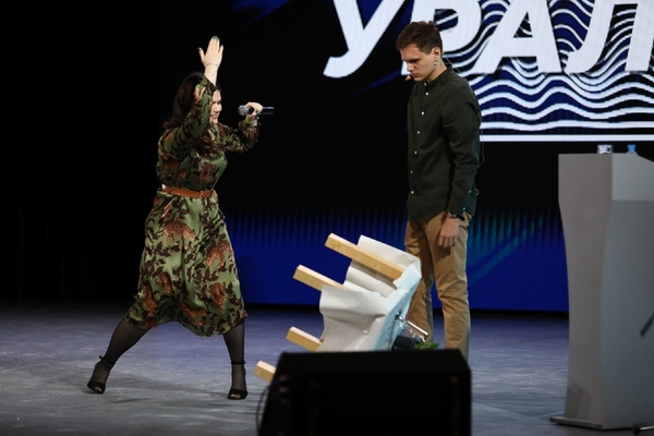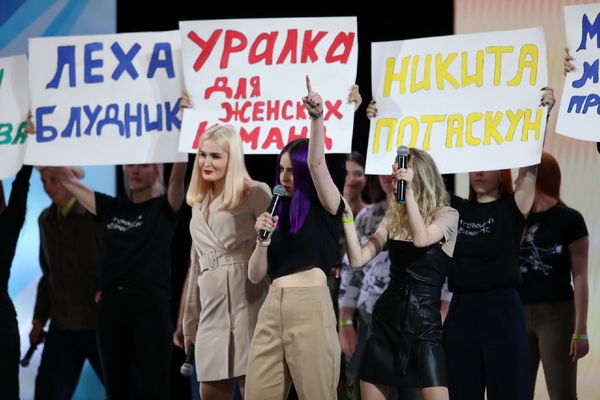 Подкат к ведущему: «Александр, вы как выброс с челябинских заводов! Только вами и дышу». Саша не реагирует, поэтому дальше минутка женского нытья и феминистический манифест.