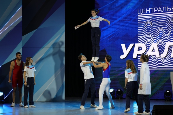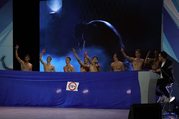Начинают с песни и поднятия флага УралГУФКа. Спортсмены стали музыкальной командой и сразу ещё песня про сборную по футболу, хотят устроить им Рампампам. Обалдеть опять песня! Теперь про Олимпийские игры, заход такой: