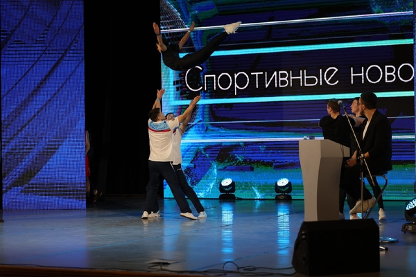 неплохо. Дальше блок спортивных новостей с акробатикой, в точку, смешно и эффектно. Слишком визуальные ребята, все сальтухи так просто и не описать. Пока все номера так или иначе завязаны на очевидных спортивных преимуществах команды. Нашли свой козырь, давят на него отлично.