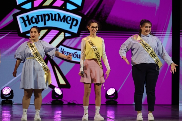 Текстовые шутки на баннерах, пока девочки переодеваются за ними - очень хорошо. А потом из-за ширмы вышли красотки в платьях и сильно серьезными стали)