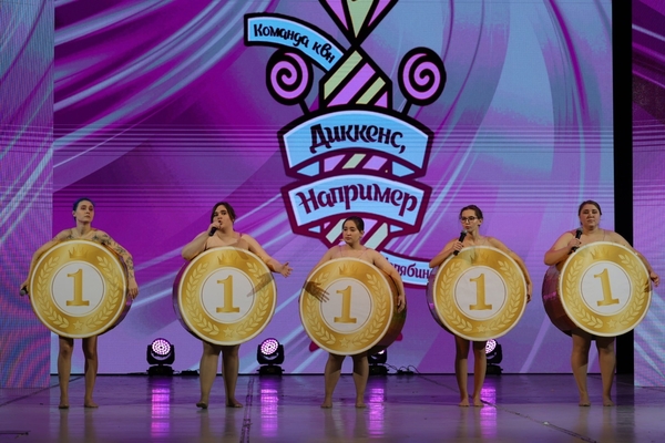 Девчонки в костюмах золотых медалей! Девчонки угрожают снять костюмы, если не возьмут 1 место, все команды уговаривают девчонок не раздеваться, а потом выходит Лея в Кубке, хорошие шутки на неё тоже!