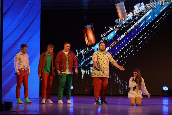 Немного сумасшествия на сцене. Начальный рэп, под бит от Любки. Сильно отличаются от всех концептом и зал тащится. Показывают видео с танцующим мэром Тольятти. А потом еще заводят Тольятинскую машину юмора, а она не заводится. Выходит третье недоразумение на сцену - Лёва. Ссорятся надо ли представляться - отлично заходит.