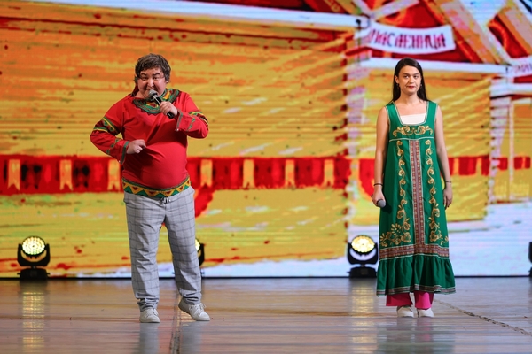 Начинают с зажигательной песни, текст не сильно понятен, но энергетика у ребят мощная. Рассказывают про Можгу, в зал всё в отлично залетает. У них, кстати, производят деревянные линейки из нашего детства.