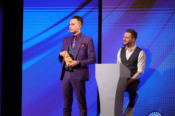 Ребята с космическим юмором. Вышла Ксюша с невидимым парнем. А там ещё и невидимый бывший парень и ещё мнооого всего, блок прикольный, но почему-то зал не понял. Тиктоник – супер. Блок школьницы хорошо заходит. К миниатюрам!