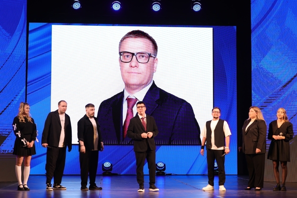 Песня максимально драйвовая. И вот уже на сцене Илья в образе губернатора Челябинской области - Алексея Леонидовича Текслера.